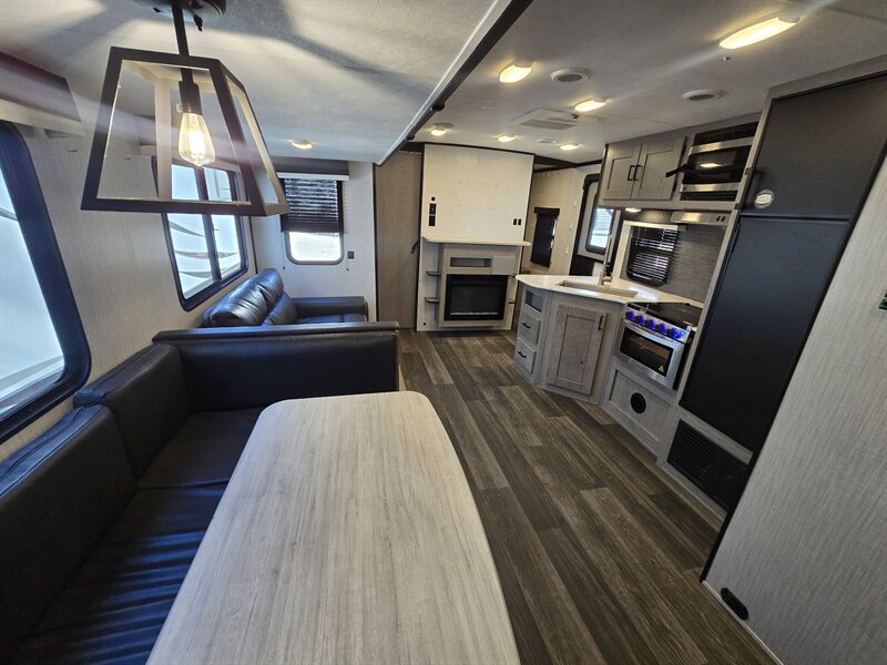 Step into adventure with this 2021 Heartland Mallard M32, a spacious and versatile travel trailer designed to make every trip comfortable and unforgettable. Thoughtfully crafted with families and weekend explorers in mind, the M32 layout offers a generous interior with plenty of room to relax, dine, and sleep — featuring a private front bedroom, a large convertible dinette, and a rear bunkhouse that’s ideal for kids or guests. The well-appointed kitchen comes equipped with modern appliances, ample counter space, and abundant storage, making meal prep easy whether you’re at the campground or on the road.
